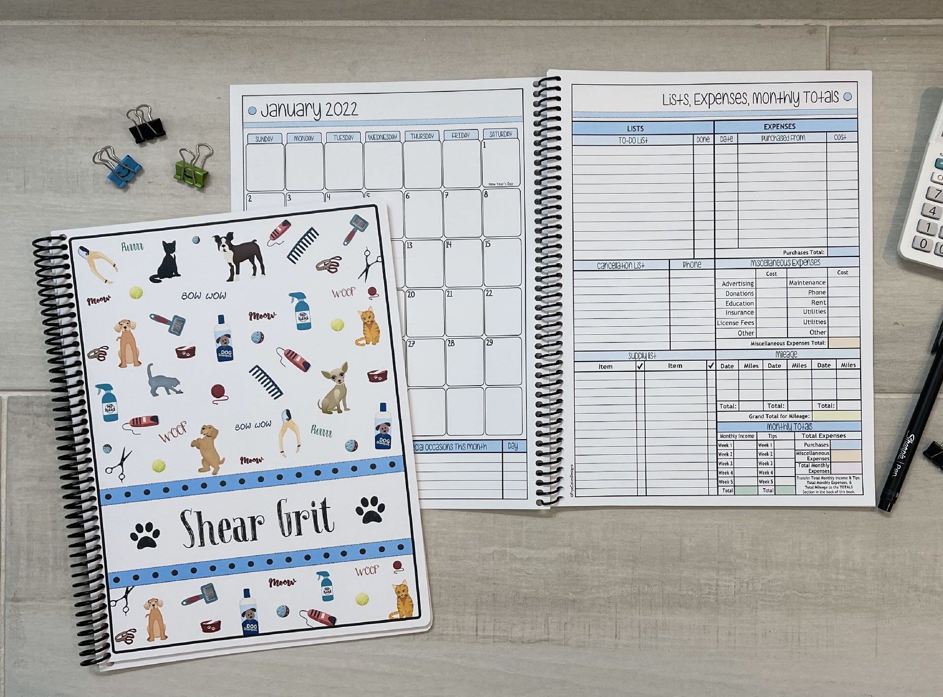 GROOMING TOOLS DESIGN - 12 Month Dated Appointment Book With Business Organizer/Planner + UPGRADE OPTIONS