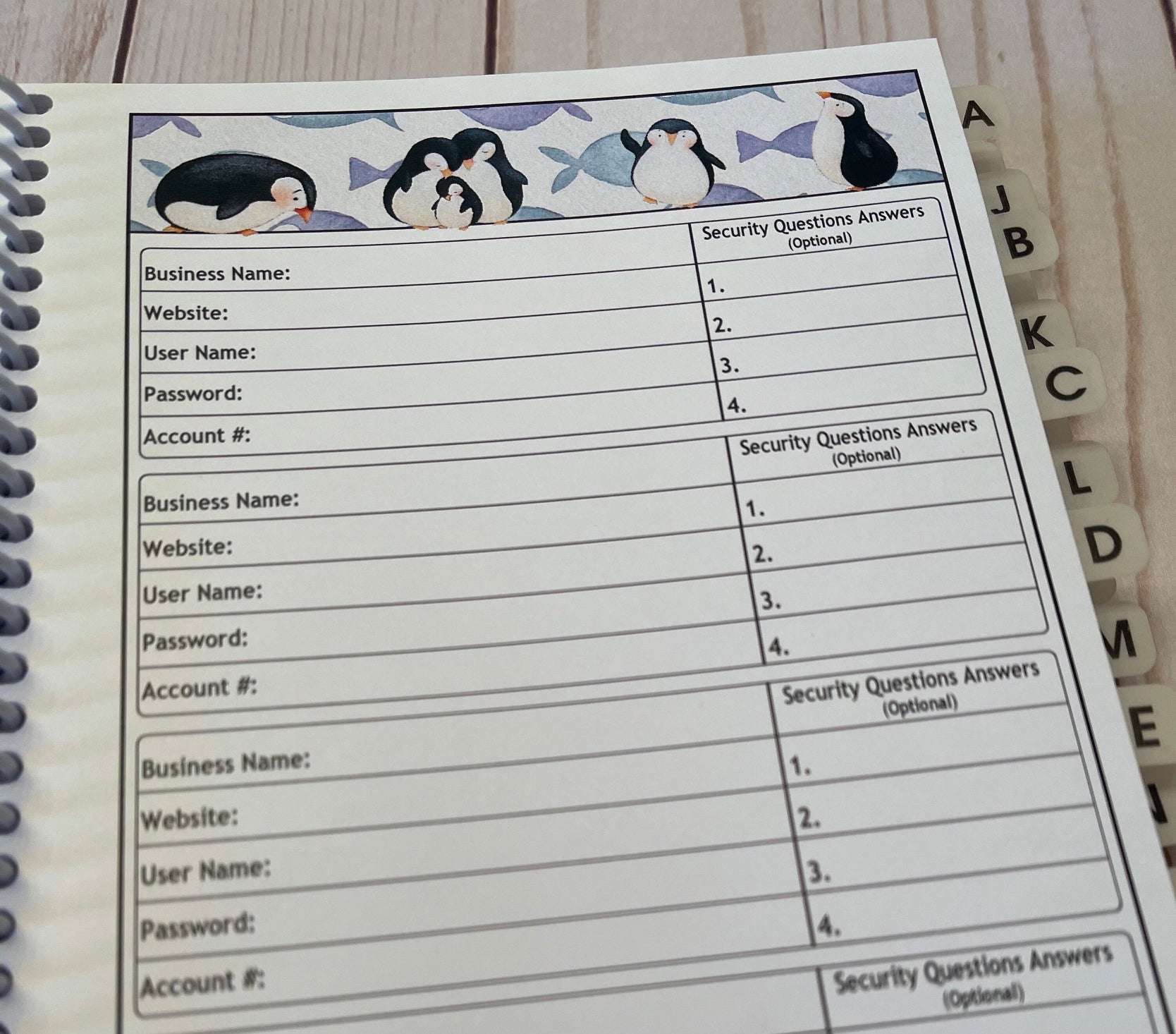 Password Organizer - Penguins Design