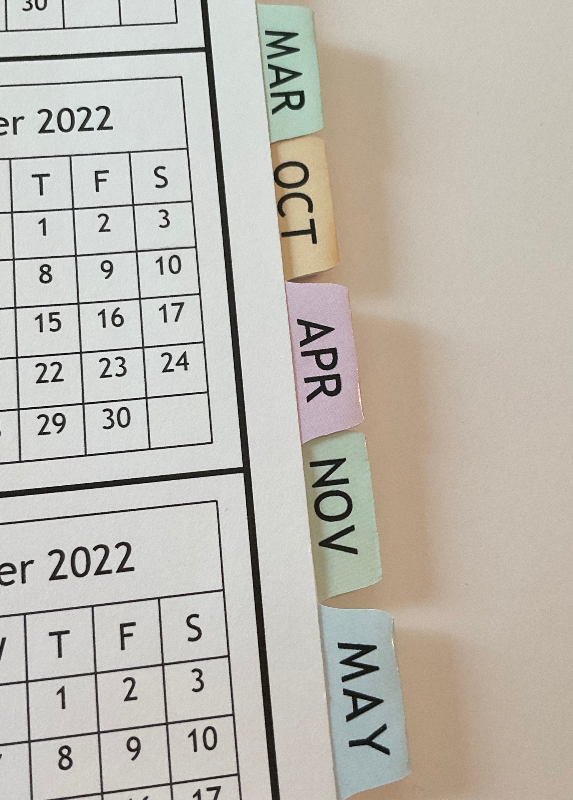 Each month starts with a Monthly Calendar page on the left side and a monthly business organizer page on the right side, followed by appointment pages for that month. While there are no monthly divider pages, there are monthly tabs.