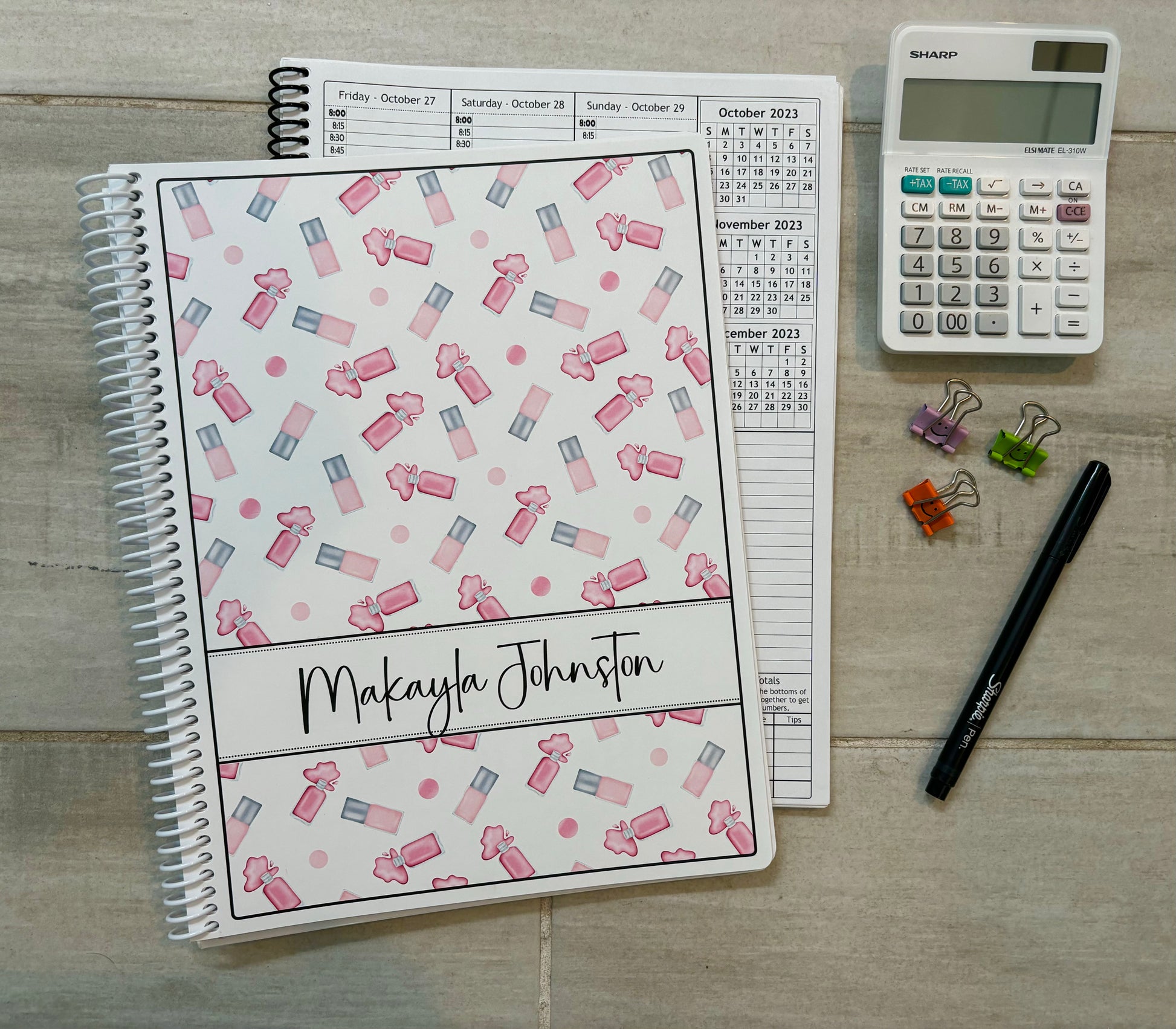 PINK POLISH BOTTLES DESIGN - 12 Month Dated Appointment Book With Business Organizer/Planner + UPGRADE OPTIONS