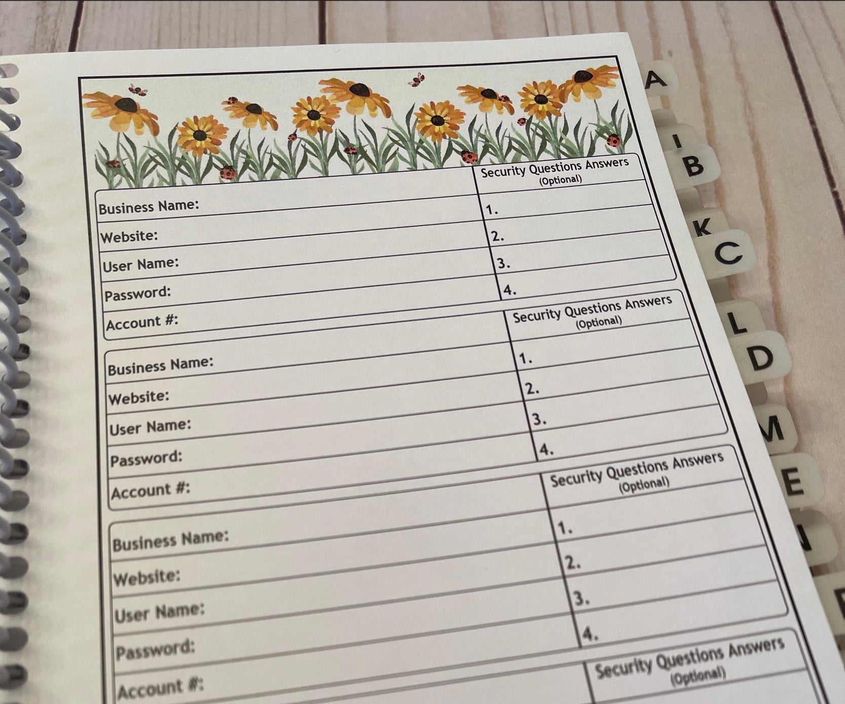 Password Organizer - Ladybugs & Flowers Design