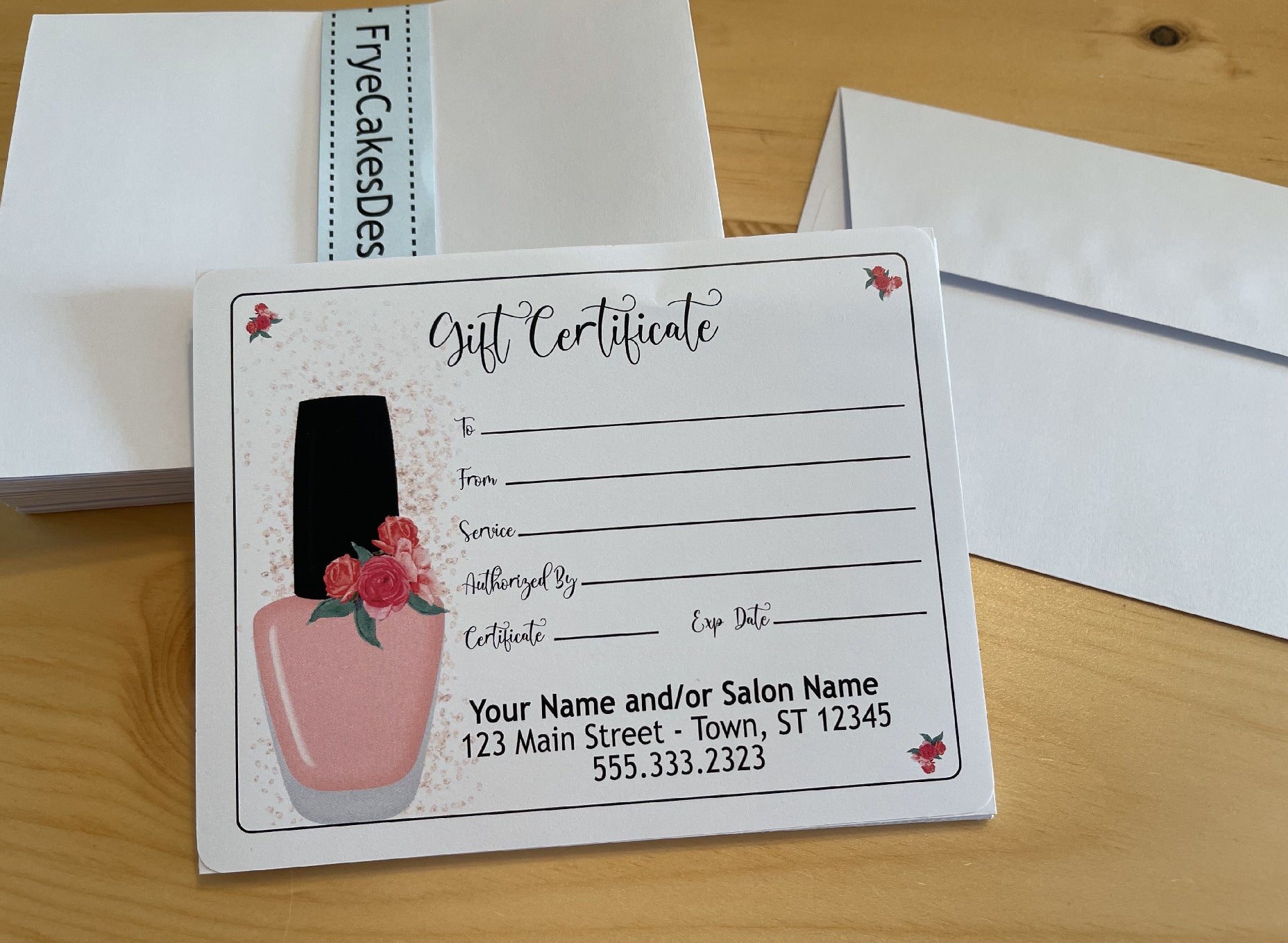 Personalized Gift Certificates FLORAL POLISH BOTTLE DESIGN - with Envelopes and Optional Sales Tracker