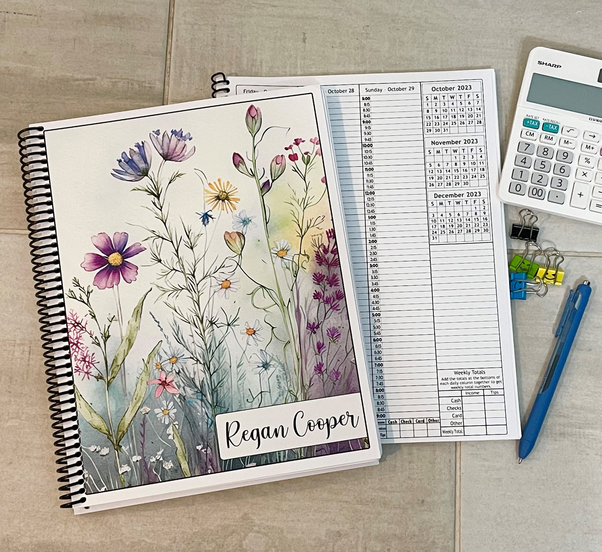 BOOK WITH INCOME & EXPENSES TRACKING: This 12-month dated appointment book includes sections for recording daily and weekly income, a dedicated area for tracking business expenses, and an annual worksheet for monitoring yearly income and expenses—ideal for tax preparation. Additionally, the book features designated spaces at the bottom of each daily column to note income transactions broken down by payment type.