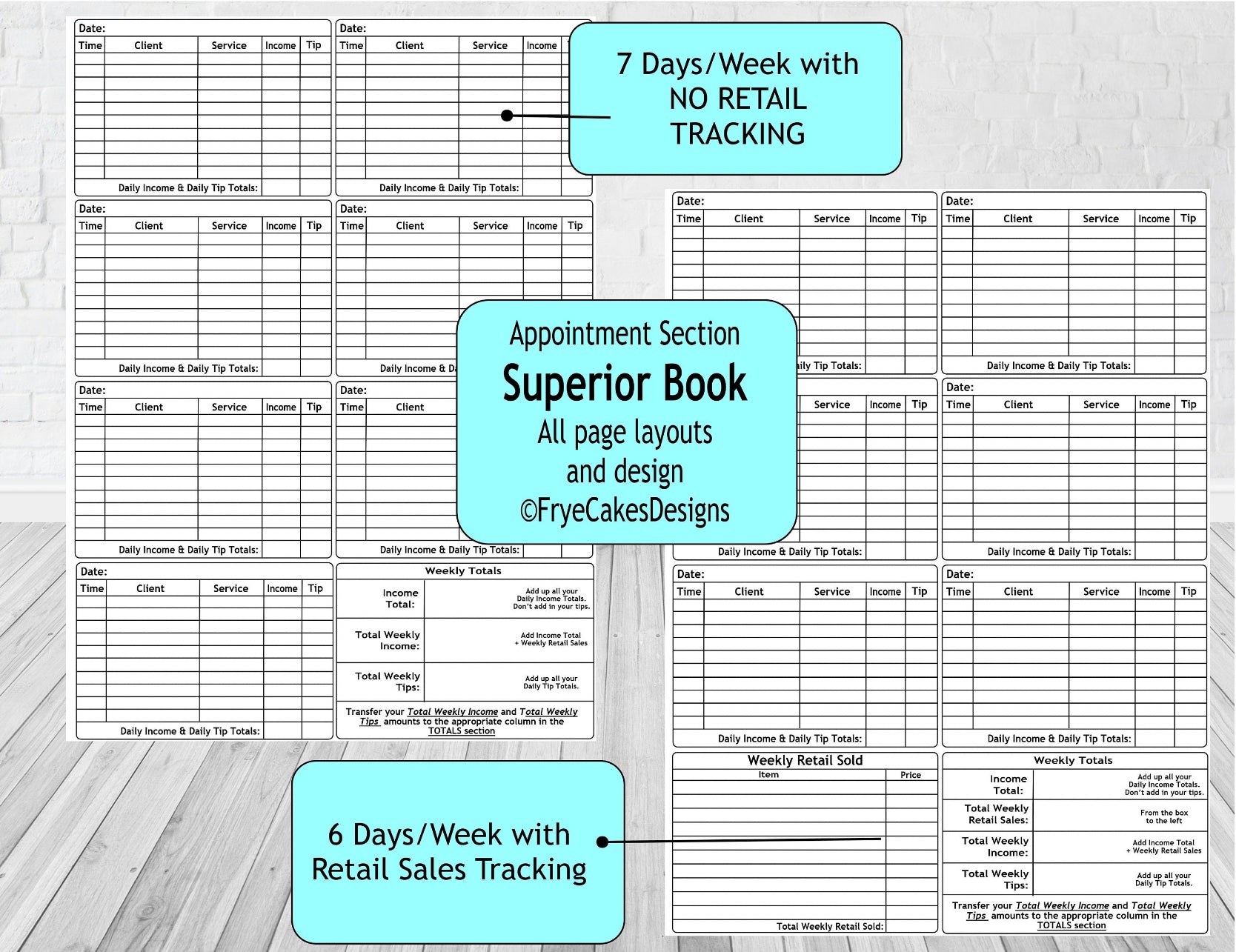 • **Note: This version does NOT include a standard appointment book section, but it CAN be used as one if you wish. It's main purpose is to keep track of Income.